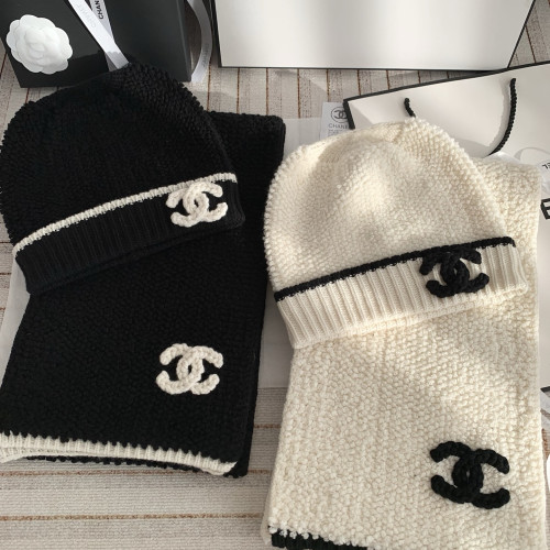샤넬 캐시미어 니트 모자+머플러 세트 > 잡화